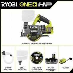 ryobi 7 tommers flisesag har portabilitet med sin kompakte størrelse som er designet for raskt og sikkert oppsett. denne sagen har også den beste skjærekapasiteten i klassen med muligheten til å rive 20″ fliser og diagonalt skjære 13″ fliser. flisesagen skjærer enkelt og nøyaktig gjennom keramikk-, porselen- og steinfliser med en tykkelse på opptil 1- 1/4 tomme. denne sagen har et bord i rustfritt stål som kan vippes for å tillate skråskjæringer i 22,5 graders og 45 graders vinkler. sagen har en ripeføring som låses på plass på de fremre og bakre skinnene for å sikre presise kutt som er rette hver gang.
