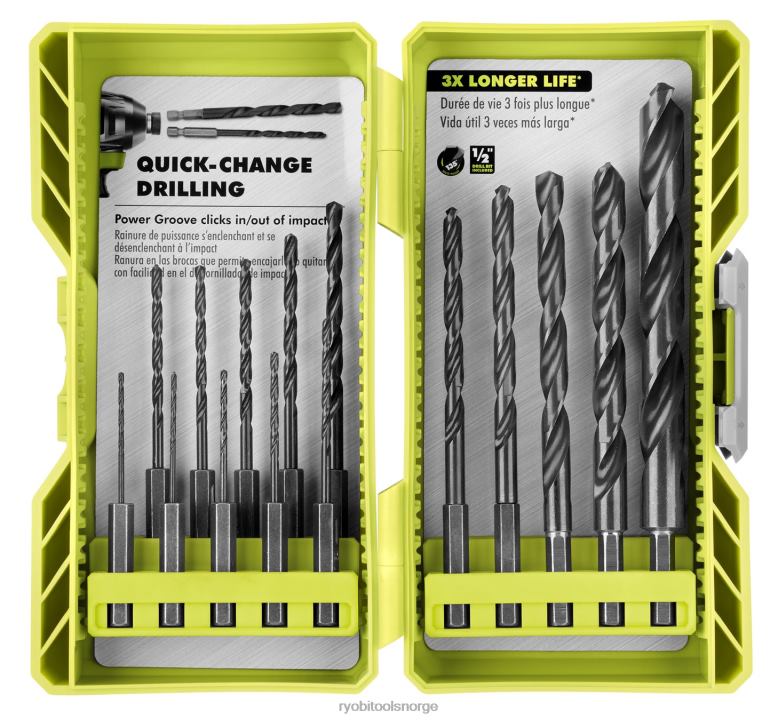 ryobi introduserer 15-delers sekskantboresett med sort oksid. dette utvalget av borekroner er perfekt for en rekke materialer, inkludert tre-, metall- og plastoverflater. bitene er konstruert av høyhastighetsstål med svart oksidfinish for å gi overlegen holdbarhet og 3 ganger lengre levetid. en annen funksjon ved disse bitene er 135 graders splittpunkt for å bore ved kontakt og forhindre at biten går. 1/4″ sekskantdesignet gir sikkert grep inn i borechucken for å hindre at biten glir. 1/4″ sekskantdesignen gir enkel bitfjerning for raske skift mellom bor og drivbits. det kompakte etuiet for enkel bittilgang og mobilitet. dette brede sortimentet, fra 1/16″ til 1/2″, garanterer litt for alle prosjektets behov. dette settet inkludes (2) 1/16″ sort oksid bor, (1) 5/64″ sort oksid bor, (1) 3/32″ sort oksid bor, (1) 7/64″ sort oksid bor, ( 2) 1/8″ sort oksid bor, (1) 9/64″ sort oksid bor, (1) 5/32″ sort oksid bor, (1) 3/16″ sort oksid bor, (1) 7/32″ sort oksid bor, (1) 1/4″ sort oksid bor, (1) 5/16″ sort oksid bor, (1) 3/8″ sort oksid bor, og (1) 1 /2″ svart oksidbor