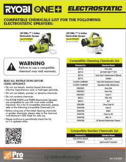 gå inn i ryobi 18v one+-systemet med 18v one+ gallon elektrostatisk sprøytesett. den kraftige motoren gir et sprayområde på 2′ til 10′ og opptil 30 gallons per lading. opplev eksepsjonell ytelse med bare et trykk på en avtrekker, uten manuell pumping. ryobi elektrostatiske sprøytere bruker elektrostatisk teknologi for å lade partikler positivt for å tillate løsninger å dekke overflater raskere og jevnere, noe som reduserer kjemisk bruk og øker effektiviteten. den gallon gjennomsiktige tanken er ideell for bruk med rengjøringsløsninger, ugressmidler, insektmidler, soppdrepende midler og de fleste andre plen- og hagekjemikalier. takle en rekke bruksområder med den 3-i-1 justerbare dysevelgeren. aktiver enkelt elektrostatisk teknologi med på/avbryter, og velg ønsket dråpestørrelse mellom 65 mikron, 85 mikron og 160 mikron. transporter enkelt fra en jobb til en annen med det lette, bærbare designet og bærehåndtaket. bruk sprøyten hele året med en sprøyteløsning for hver sesong. best av alt er det en del av ryobi one+-systemet der et hvilket som helst 18v one+-batteri fungerer med et hvilket som helst 18v one+-produkt. dette 18v one+ gallon elektrostatiske sprøytesettet dekkes av ryobi 3-års produsentgaranti og inkluderer p2809 18v one+ elektrostatisk sprøyte, p190 18v 2ah litiumbatteri, p118b 18v lader, (2) håndleddsstropper og brukermanualer.
