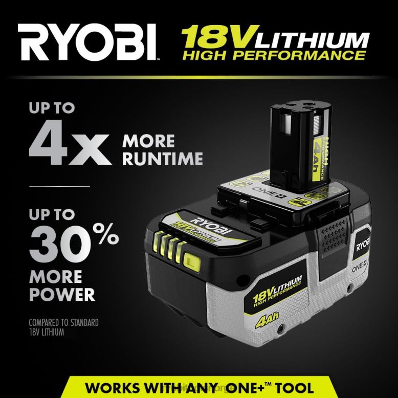 gå inn i ryobi 18v one+-systemet med 18v one+ 4ah litiumion-batteri med høy ytelse. dette 4ah-batteriet har opptil 4 ganger mer kjøretid enn den forrige modellen, noe som øker den totale effektiviteten. Intellicell batteriteknologi har avansert elektronikk som lar batteriene vare lenger, tenke smartere og levere opptil 30 % mer kraft. den kjølige kjernedesignen reduserer temperaturen for å optimalisere batteriytelsen og forlenge batteriets levetid. avanserte litium-ion-celler maksimerer ytelsen og kjøretiden under krevende applikasjoner. den robuste designen og antivibrasjonsteknologien øker holdbarheten og forbedrer brukeropplevelsen. dette batteriet har en ledet drivstoffmåler med høy synlighet for tydelig å vise gjenværende driftstid. enkelt installere og ta ut batteriet medsikre hurtigutløserlåser. par dette litium-ion høyytelsesbatteriet med et hvilket som helst 18v one+ hk-verktøy for å utnytte høyytelses børsteløse motorer og avansert elektronikk for mer kraft, lengre driftstid og den beste opplevelsen totalt sett på 18v one+-systemet. dette 18v one+ 4ah lithium-ion høyytelsesbatteriet er støttet av ryobi 3-års produsentgaranti og inkluderer (1) pbp004 18v one+ 4ah lithium-ion høyytelsesbatteri og brukerhåndbok. lader selges separat.
