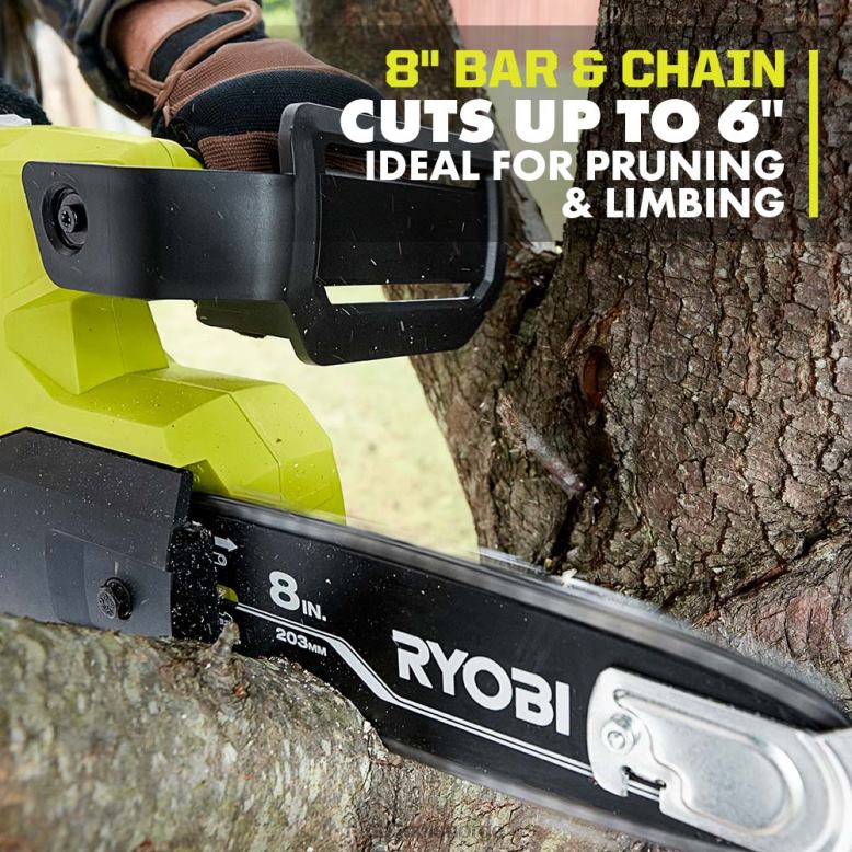 utvid ryobi 18v one+-systemet med 18v one+ 8” beskjæringsmotorsagsett. 8” sverdet og kjedet og den kraftige motoren takler grener på opptil 6”, noe som gjør den ideell for beskjæring og lett kvisting. med opptil 23 kutt per ladning og en førsteklasses komplett kjede, gir beskjæringsmotorsagen lengre driftstid og raskere skjæring. opplev eksepsjonell ytelse med bare et trykk på en avtrekker, uten stresset med gass eller ledninger. for ekstra bekvemmelighet har den en oljefri design, kjedestramming med verktøy og verktøyoppbevaring om bord. den er kompatibel med ry8c1 8″-erstatningskjeden. best av alt er den en del av ryobi one+-systemet der et hvilket som helst 18v one+-batteri fungerer med ethvert 18v one+-produkt. denne 18v one+ 8in stangsagen er støttet av ryobi 3-års produsentgaranti and inkluderer 18v p190 2ah batteri, 18v lader, kombinasjonsnøkkel, slire, safe-t-tip og brukerhåndbøker.