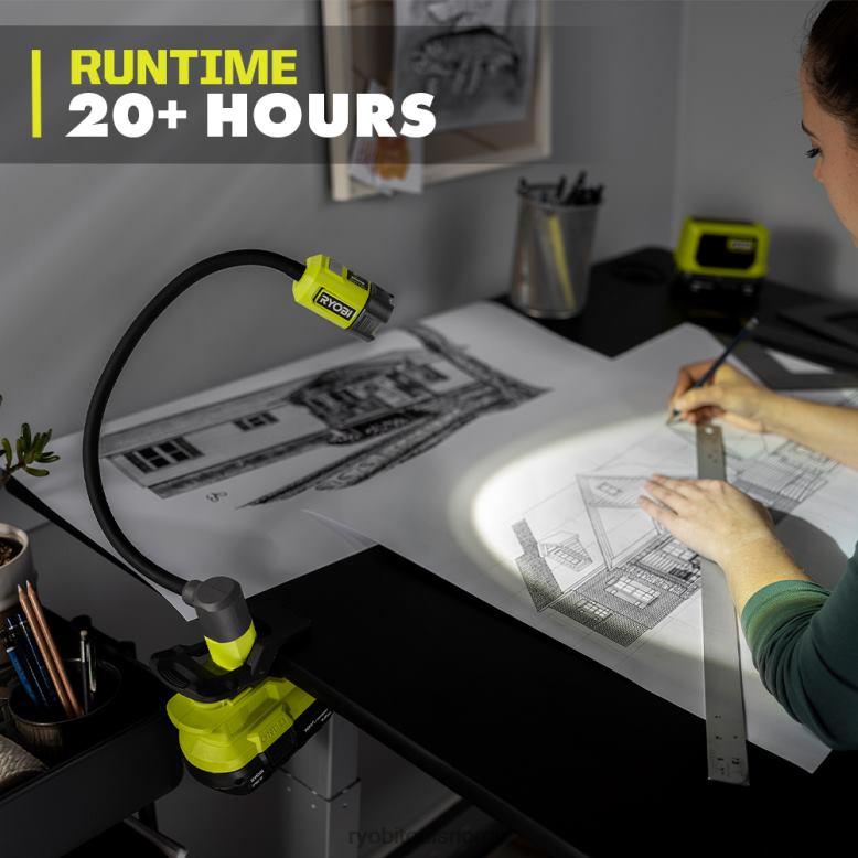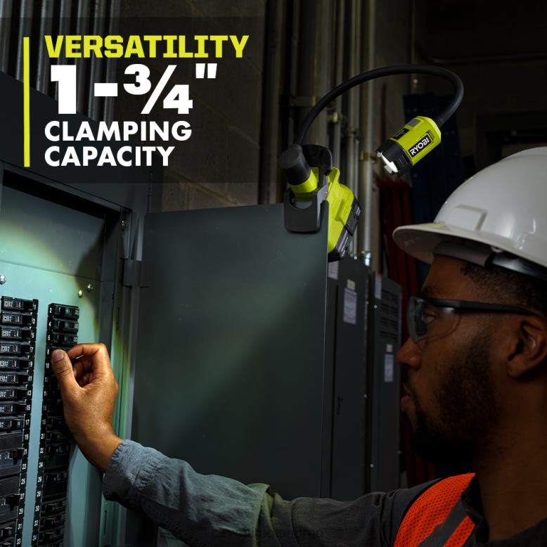 utvid ryobi 18v one+-systemet med ryobi 18v one+ fleksible led-klemmelys. med sin evne til å klemme til materialer opptil 1-3/4″ tykke, inkludert rør og 2-by-tømmer, gjør dette lyset montering til en lek. Denne klemlampen produserer opptil 400 lumen med LED-lyseffekt i flommodus for å lyse opp evt. plass. det unike hodet lar deg justere fra flommodus (400/200 lumen) til spotmodus (200/100 lumen) med et enkelt trekk i hodet. bla gjennom to lysstyrkeinnstillinger (høy/lav) i hver modus til fullt Tilpass belysningen din. Denne lampens 16″ fleksible hals og roterende sokkel gir presis plassering og manøvrerbarhet for håndfri belysning og belysning. og med over 32 timers driftstid på lavt, vil dette lyset aldri forlate deg i mørket. dette 18V fleksible LED-klemmelyset er tilbakeed av ryobi 3-års produsentgaranti og inkluderer (1) pcl665 18v one+ led fleksibelt klemmelys og (1) brukerhåndbok. batteri og lader selges separat.