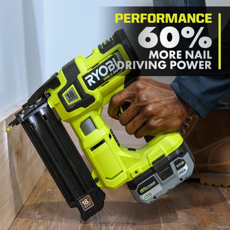 utvid ryobi 18v one+-systemet med 18v one+ hk trådløs airstrike 18-gauge brad spikerpistol (kun verktøy). denne one+ hp brad spikerpistolen har airstrike-teknologi, som eliminerer behovet for støyende kompressorer, klumpete slanger eller dyre gasspatroner. dette betyr raskere oppsett og enkel manøvrerbarhet på arbeidsplassen. ryobi one+ hp brad spikerpistolen er i stand til å senke opp til 2-1/8″ spiker i hardtre. Den har også den innovative accudrive-nesen, som tilbyr en overlegen siktlinje for brukeren, noe som resulterer i presis og nøyaktig spikerplassering, til og med på trange steder. one+ hk-teknologi gir mer kraft og kjøretid, med muligheten til å kjøre opptil 2250 spiker per lading og 60 % mer spikerdrivkraft sammenlignet med den børstede modellen.er en verktøyfri dybdejustering og hastighetshjul for lufttrykk som muliggjør riktig innstilling av spikerhoder i alle bruksområder. Det finnes også en verktøyfri låselås for å raskt og enkelt fjerne negler i tilfelle fastkjørthet, og et LED-lys for arbeid i situasjoner med lite lys. Denne one+ hk brad spikerpistolen er perfekt for vindu, dør og skap, og er det perfekte tillegget til enhver snekker- eller verktøysamling. dette verktøyet støttes av ryobi 3-års produsentgaranti.