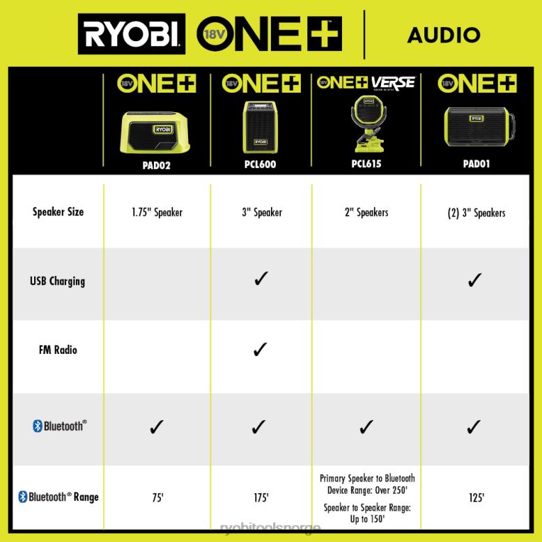 denne ryobi 18v one+ høyttaleren med trådløs Bluetooth-teknologi er et spillskiftende tillegg til one+-samlingen din. vår nye smarte forsterkerteknologi leverer kraftig, skarp lyd uansett volum, med 8,5 ganger mer klarhet enn p746. med 125 fots bluetooth-rekkevidde og over 10 timers kjøretid på et ryobi 18v one+ 4,0 ah batteri, er denne høyttaleren den perfekte partneren for å komme deg gjennom enhver jobb. det integrerte håndtaket lar deg ta med deg dristig lyd, uansett hvor du går. denne høyttaleren kommer også med en 2,1 amp usb-ladeport for å lade telefonen eller nettbrettet mens du jobber. talemeldinger indikerer strøm på/av og bluetooth-tilkobling for å gjøre bruken av denne høyttaleren enklere enn noen gang. denne høyttaleren er støttet av ryobi 3-års produsentgaranti og inkluderer pad01 18v one+ høyttaler og brukerhåndbok. battery og lader selges separat.