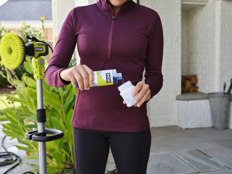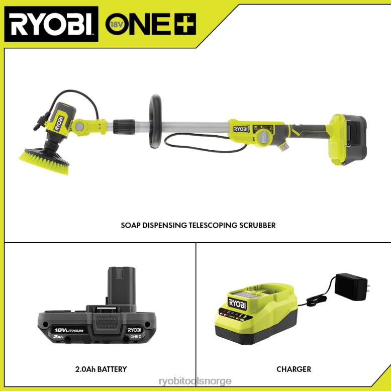 RYOBI 18v one+ såpedispenserende teleskopskrubbersett rengjøring Z800T565