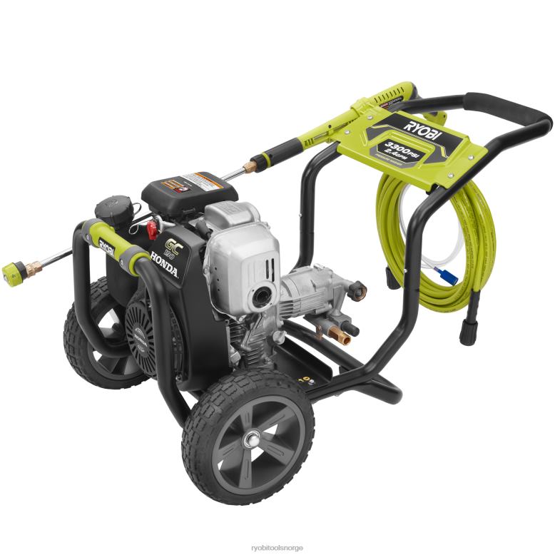 ryobi 3300 psi høytrykkspyler er konstruert for å håndtere de tøffeste jobbene med en kraftig honda gc190-motor og aksialpumpe for å levere 2,4 gpm. den 35 fot høytrykksslangen som ikke skader gir 40 % lengre og 5-i-1 hurtigutskiftningsmunnstykket lar deg raskt endre sprøytemønster for å passe dine rengjøringsbehov best. trillebårens rammedesign og store 10 tommers flate hjul gir økt holdbarhet og det vendbare håndtaket er ideelt for kompakt oppbevaring når jobben er gjort. ryobi 3300 psi høytrykkspyler dekkes av en 3-års begrenset garanti og en 2-års motorgaranti.