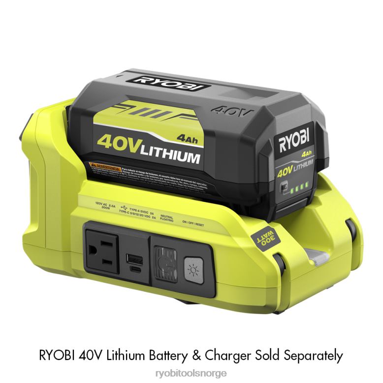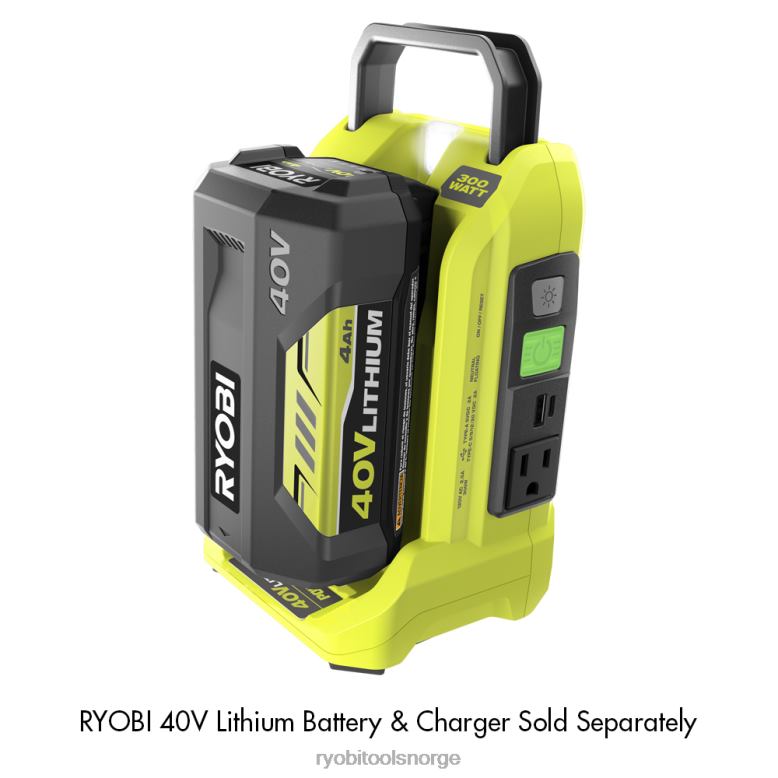 ryobi 40v-strømkilden leverer praktisk strøm på farten uansett hvor du trenger det. med 300 watt kontinuerlig utgang, er denne omformeren perfekt for å drive små elektroniske enheter som bærbare datamaskiner, nettbrett og mobiltelefoner. strømkilden er utstyrt med (2) usb-uttak, (1) 120v-uttak og på et innebygd LED-lys for allsidig og praktisk betjening.