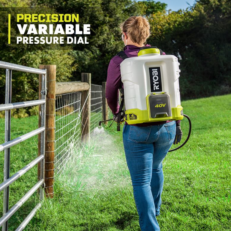 ryobi 40v 4 gallon trådløs ryggsekk kjemisk sprøyte gir deg bekvemmeligheten og komforten for å få jobben gjort uten behov for pumping. spray opp til 200 gallons per ladning og for presis påføring bruk den variable skiven for å justere til ønsket trykk. den er utstyrt med 4 dyser: justerbar, flat vifte, dusjhode og dobbel, for en rekke bruksområder. med en 4 gallon gjennomskinnelig tank, er du i stand til enkelt å referere væskenivåer og ingen kjemikalier vil gå til spille med sin gravitasjonsmatede design. den er ideell for bruk med ugressmidler, insektmidler, soppdrepende midler og de fleste andre plen- og hagekjemikalier. det er en komfortabel ryggsekkdesign med polstrede og justerbare skulderstropper som lar deg sprøyte komfortabelt rundt i hagen. dette settet inkluderer en ryobi 40v 2ah litium-ion batteri og 40v lader. Ryobi 40v 4 gallon trådløs ryggsekk kjemisk sprøyte, 40v 2ah batteri og lader er kompatible med alle ryobi 40v produkter. dette verktøyet dekkes av en 5-års garanti og batteriet dekkes av en 3-års garanti.