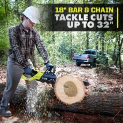 gå inn i ryobi 40v-systemet med det børsteløse 18″ motorsagsettet på 40v hk. 40v hk-teknologi gir mer kraft enn en 38cc gasmotorsag, noe som gjør denne motorsagen en ekte gasserstatning. denne motorsagen får opptil 168 kutt per ladning og er utstyrt med en førsteklasses komplett kjede. 40V-teknologi kombinerer en børsteløs motor, avansert elektronikk og høyytelses litiumteknologi for å gi mer kraft, lengre driftstid, raskere kutting, og større holdbarhet. 18” sverdet og kjedet takler kutt på opptil 32”, noe som gjør den ideell for felling, knekking og kvisting. Denne motorsagen har en justerbar automatisk smører for å holde kjedet smurt for lengre levetid på kjedet og et ekstra kjede brems for tilbakeslagsbeskyttelse Juster kjedet for kontrollerte, rene kutting av verktøyet kjedestramming med innebygd verktøyoppbevaring. lad opp 40v 5ah-batteriet på mindre enn 50 minutter med den medfølgende 40v hurtigladeren. best av alt er det en del av ryobi 40v-systemet der et hvilket som helst 40v-batteri fungerer med ethvert 40v-produkt. dette 40v hk børsteløse 18″ motorsagsettet er støttet av ryobi 5-års produsentens verktøygaranti, 3-års produsentens batterigaranti, og inkluderer ry40508 40v hk børsteløs 18″ motorsag, op40504 5ah litiumbatteri, sc0abbard, hurtiglading, op406 kombinasjonsnøkkel, motorsagkasse og brukermanualer.