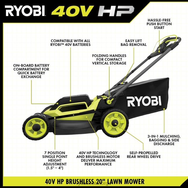 gå inn i 40v-systemet med ryobi 40v hk børsteløs 20” selvgående gressklipper. med 40v hk-teknologi gir den mer kraft enn en 150cc gassklipper, noe som gjør den til en ekte gasserstatning. ideell for opptil 1/2 acre, denne klipperen leveres med et inkludert 40v 6ah litiumbatteri for opptil 42 minutters kjøretid. 40v hk-teknologi kombinerer en børsteløs motor, avansert elektronikk og litiumbatterier som automatisk reagerer på klippeforhold ved å øke knivhastigheten for å eliminere fastkjøring og kraft gjennom de tøffeste kuttet. pluss at dets selvgående drivsystem med variabel hastighet hjelper deg med å fullføre jobben raskt og enkelt. best av alt er det en del av ryobi 40v-systemet der et hvilket som helst 40v-batteri fungerer med ethvert 40v-produkt. denne selvgående klipperen er støttet av ryoenbi 5-års produsentens verktøygaranti, 3-års produsentens batterigaranti, og inkluderer ry401018 40v hk børsteløs 20″ selvgående klipper, op40605 40v 6ah litiumbatteri, op408 40v hurtiglader, gressoppsamlerpose, startnøkkel, mulch sideutløpssjakt og brukermanualer.
