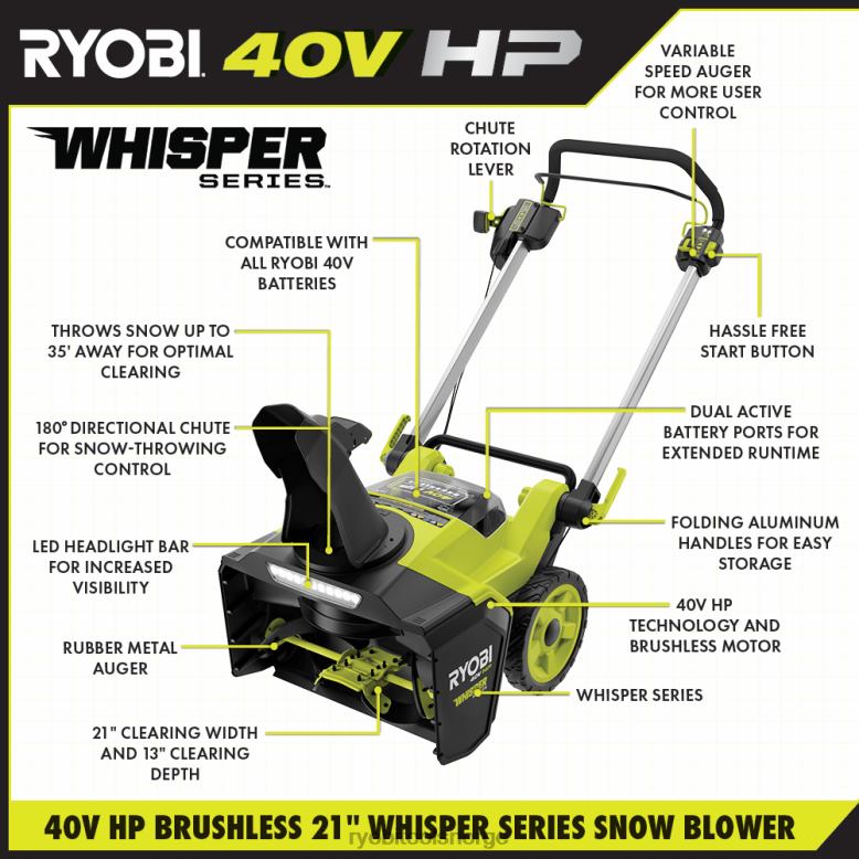 RYOBI 40v hk børsteløs 21 whisper serie snøfresersett utendørs Z800T429