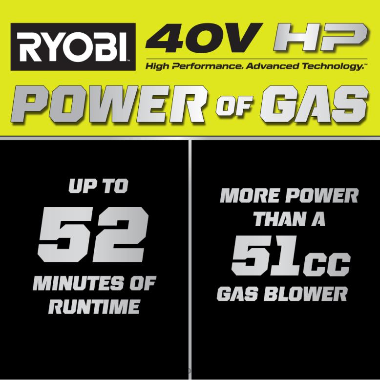 - opptil 52 minutters driftstid med (2) inkluderte 40v 6ah batterier