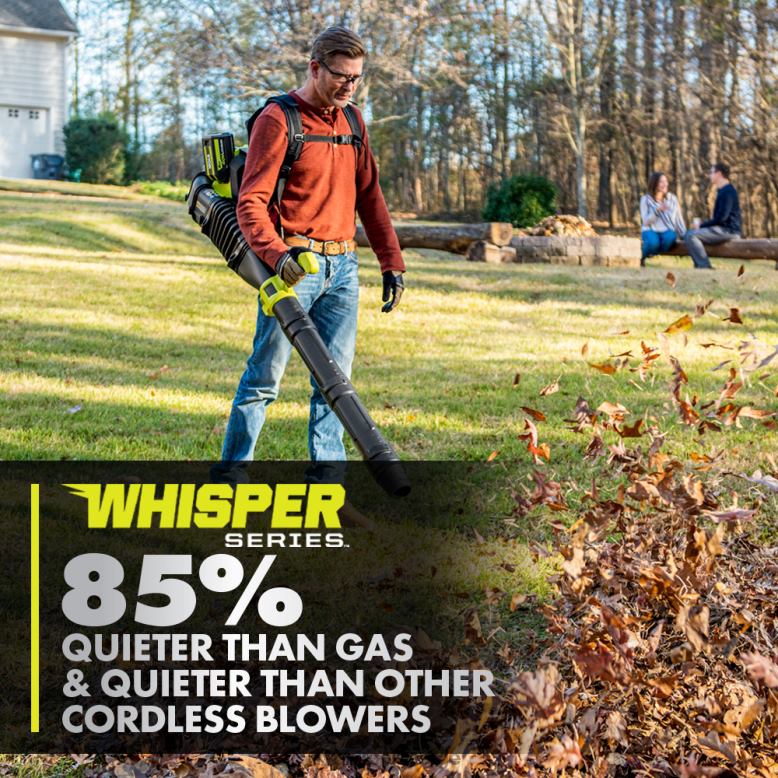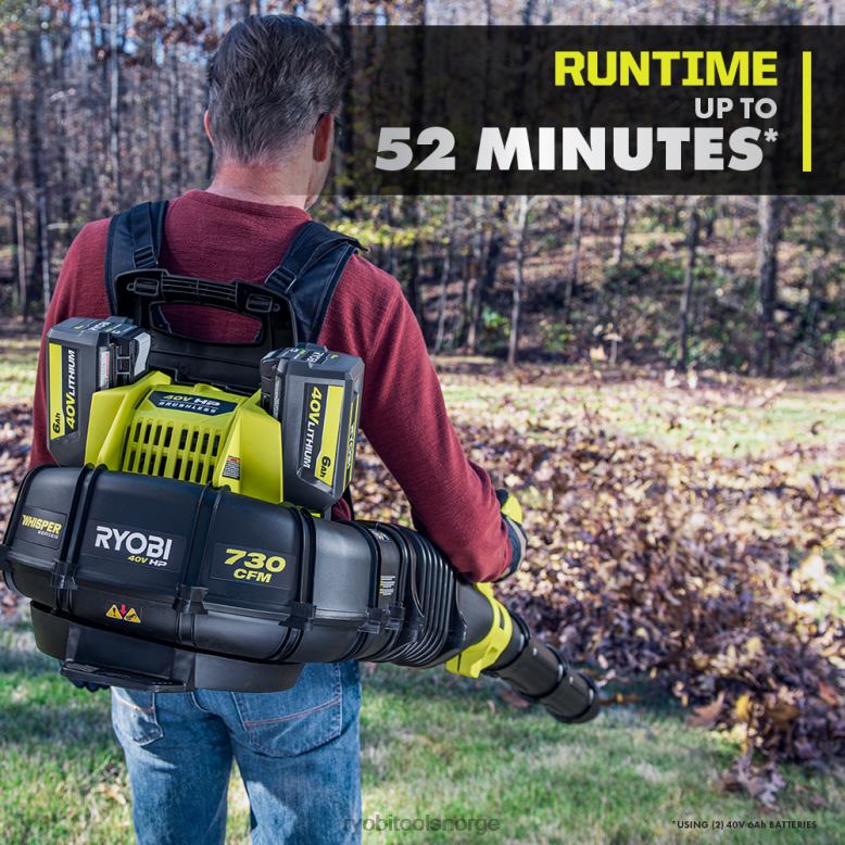 forbedre 40v-systemet med 40v hk trådløs ryggsekkblåsersett. ved hjelp av 40v hk-teknologi, leverer denne ryggsekkblåseren mer kraft enn en 51cc gassblåser, noe som gjør den til en ekte gasserstatning. hp ryggsekkblåseren leverer opptil 52 minutters kjøretid med de inkluderte (2) 40v 6ah litiumbatteriene. 40v hk-teknologi kombinerer en børsteløs motor, avansert elektronikk og høyytelses litiumteknologi, for enkelt å takle våte løv og tyngre plenavfall med 730 cfm og 165 mph. det er gassytelse med bare et trykk på en avtrekker. ingen gass, ingen vedlikehold, ingen problemer. Designet med støydempende skum, er denne blåseren i whisper-serien konstruert for å være 85 % stillere enn gass og til og med andre trådløse blåsere, slik at du kan jobbe når som helst uten å forstyrreg andre. en variabel hastighetsutløser og turboknapp lar deg kontrollere utgangen av luft slik at du kan slå tilbake når du er i ømfintlige områder som å blåse løv fra mulchbed og aktivere turboknappen når du fjerner tøffere rusk. legg til den tilpassbare hastighetsspissen for økt lufthastighet. best av alt er det en del av ryobi 40v-systemet der et hvilket som helst 40v-batteri fungerer med ethvert 40v-produkt. dette 40v hk blåsesettet er støttet av ryobi 5-års produsentens garanti og 3-års produsentens batterigaranti. dette settet inkluderer ry404017 40v ryggsekkblåser, (2) op40605 40v 6ah batterier, op406 40v hurtiglader, blåserør, hastighetstip og brukermanualer.