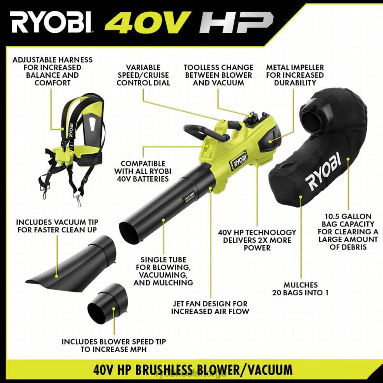 RYOBI 40v hk jetvifte vifte/vakuumsett utendørs Z800T308