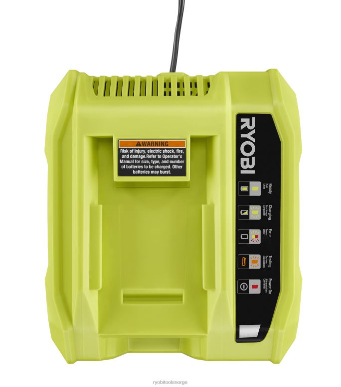 ryobi introduserer 40-volts litium-ion hurtiglader. i gjennomsnitt lader denne laderen 40V-batterier på 1 time eller mindre. indikatorlysene gir batteriets ladestatus og lar deg til og med vite om batteriet er for varmt eller for kaldt til å lades. Denne laderen er kompatibel med alle ryobi 40-volts batterier og har innovativ ladeteknologi, og er designet for å beskytte og forlenge levetiden til batteriene dine. bruk mindre tid på å vente på en lading, og mer tid på å takle hagen din.