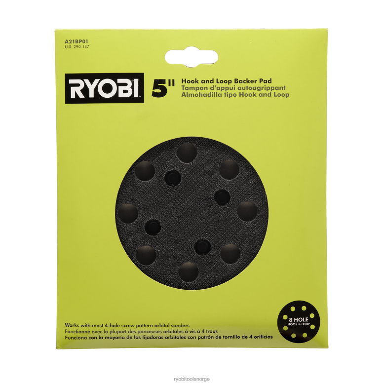 ryobi introduserer 5 tommers støttepute for orbitalslipere. denne støtteputen er kompatibel med alle ryobi 5 tommers tilfeldige baneslipere. støtteputen kan brukes med alle typer psa-slipepapir. for å lære mer om ryobi-verktøy, gå til ryobitools.com og sjekk ut ryobi nation. inkluderer en 8-hulls mønster 5 tommers støttepute.
