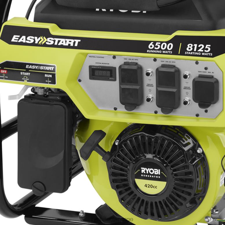 ryobi 6500-watts bærbare generator er den perfekte strømløsningen hjemme eller på arbeidsplassen. denne generatoren leverer 6500 løpewatt og 8125 startwatt effekt. en slitesterk ramme og 10 tommers hjul bidrar til å beskytte enheten samtidig som den er enkel å transportere. en automatisk spenningsregulator sikrer pålitelig og konsistent strøm samtidig som den forhindrer skade på generatoren og enhetene som er koblet til den. det lett tilgjengelige kontrollpanelet har fire 120-volts 20 amp (gfci-beskyttet) uttak og ett 240-volts 30 amp vrilåsuttak for å dekke alle dine strømbehov. alt støttet av en ryobi 3-års begrenset garanti, er denne bærbare ryobi-generatoren garantert å fungere.