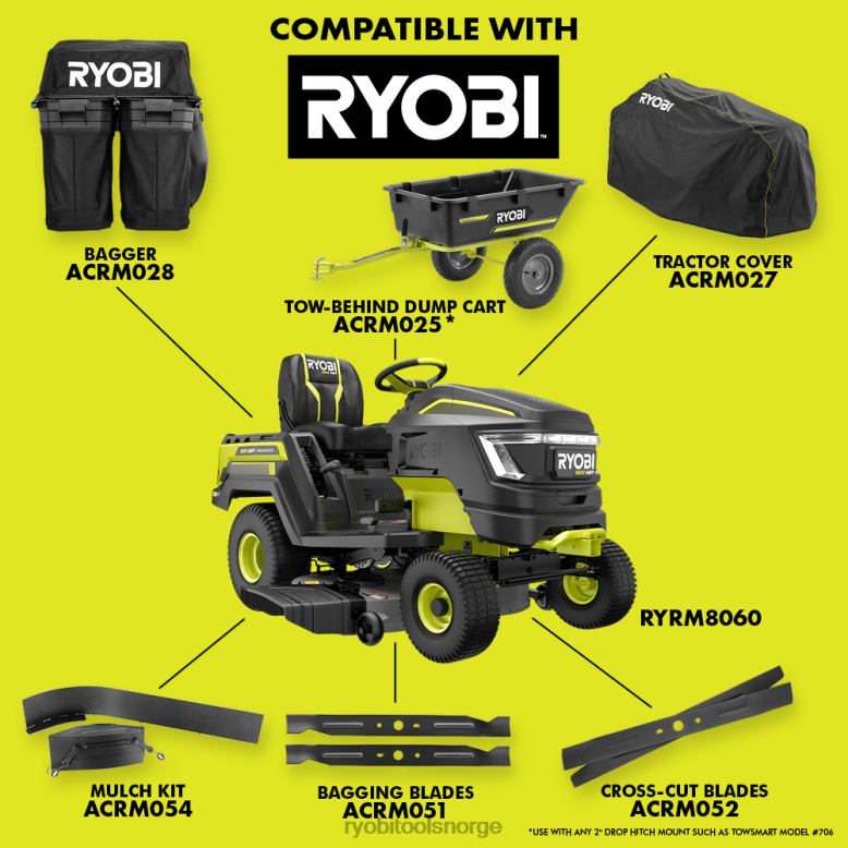 RYOBI 80v hk børsteløs 42 batteri trådløs elektrisk kjøregresstraktor utendørs Z800T220