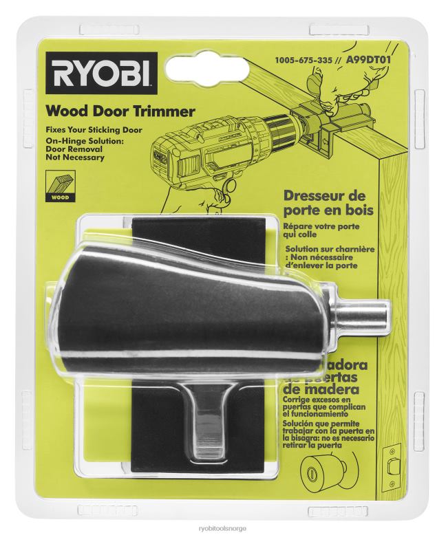 ryobi-dørtrimmeren i tre er den perfekte løsningen for frustrerende dører som sitter fast. denne unike trimmeren krever bare en standard drill, ingen ekstra materialer, for å barbere bort overflødig materiale langs døren. fjerner opptil 1/32″ per passasje på 1-3/4″ & 1-3/8″ dører, og denne trimmeren er den beste løsningen for de fleste klebende tredører. Denne raske, enkle løsningen forhindrer behovet for å trekke ut klumpete slipemaskiner eller høvler. Det beste av alt er at tredøren kan holde seg på hengslene, noe som halverer prosjekttiden og innsatsen.
