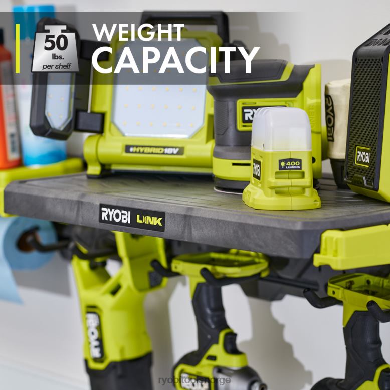 ryobi link modulære lagringssystem revolusjonerer lagringsindustrien, og lar deg organisere, få tilgang til og transportere livet ditt. ryobi link 21″ solid hylle er designet for å brukes sammen med link 2-i-1 hyllebraketter. Bruk to 2-i-1 braketter for å holde en hylle eller legg til en tredje brakett for å holde to hyller ved siden av hverandre, deling den midterste braketten. fortsett å utvide hyllesystemet ved å legge til en ekstra brakett og hylle på rad, noe som gir 3,5′ hylleplass. Hyllene er forhøyet på toppen av brakettene for å tillate kroker å plasseres på veggskinnen under hylle for ekstra oppbevaring. det integrerte dryppbrettet holder plassen din ren og fanger opp søl eller søl. Det beste av alt er at det er en del av Ryobi Link modulære oppbevaringssystem med produkter som bruker samme låsteknologi for sømløst å koble sammen dine mobile og stasjonære lagringsbehov. eie din plass med ryobi link modulært lagringssystem.