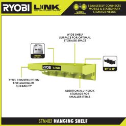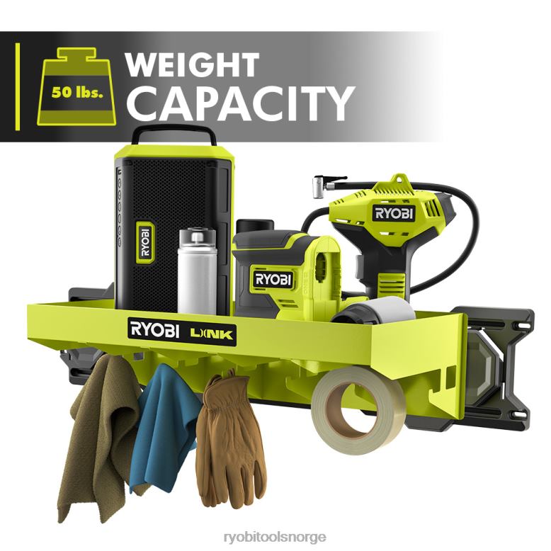 ryobi link modulære lagringssystem revolusjonerer lagringsindustrien, og lar deg organisere, få tilgang til og transportere livet ditt. ryobi link hengende hylle er designet for å maksimere lagringsplassen din. den brede hylleoverflaten og 6 j-kroker gir maksimal organisering på trange steder. stålkonstruksjonen tillater en vektkapasitet på 50 lb. Det beste av alt er at det er en del av Ryobi Link modulære lagringssystem med produkter som bruker samme låseteknologi. eie din plass med ryobi link modulært lagringssystem.
