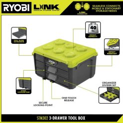 RYOBI link verktøykasse med 3 skuffer Oppbevaring Z800T643