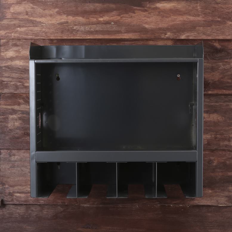 dette lagringssystemet gir en enkel måte å holde orden på verktøy og tilbehør. sidekabelholderen gir ekstra bekvemmelighet og beskyttelse for dine batterier og ladere. det åpne konseptet gir klar synlighet av alt verktøy og tilbehør. dette skapet kan enkelt monteres på en garasje eller verkstedvegg.