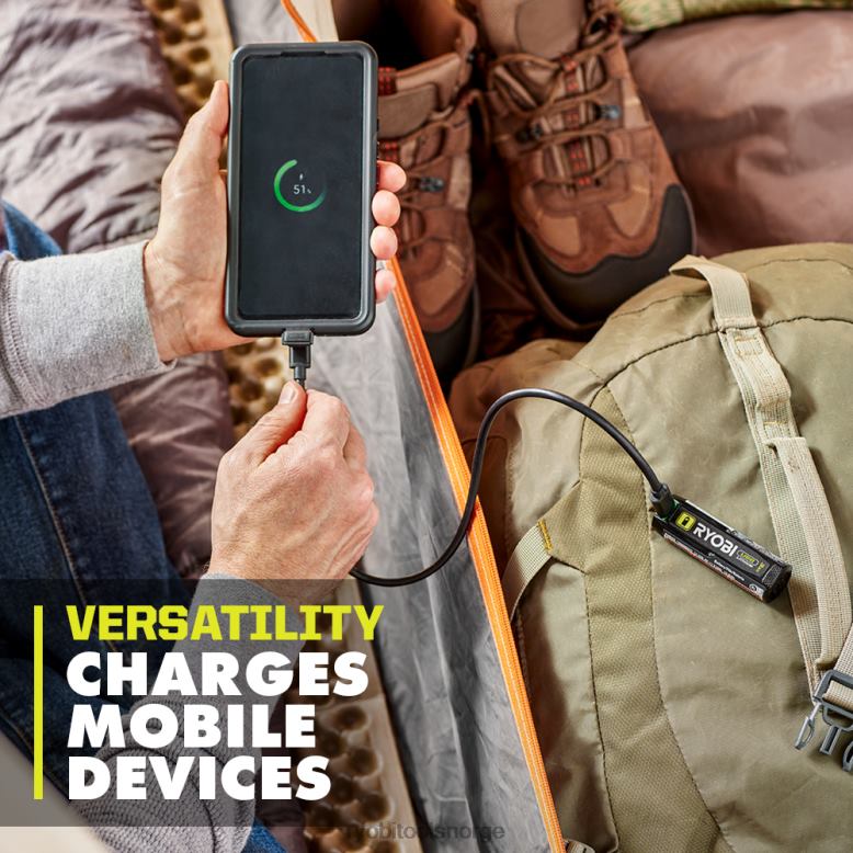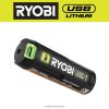 ryobi introduserer usb litium 3ah litium oppladbart batteri. Dette batteriet gir bekvemmelighet mens du er på farten, og vil lade de små bærbare enhetene dine som telefonen eller smartklokken. med 50 % mer kjøretid enn fvb01, vil du kunne oppnå mer per lading. den innebygde ledede drivstoffmåleren tar bort gjettearbeidet ved å tydelig indikere batterinivåstatusen. dette batteriet har en usb-c-ladeport for enkel lading med en hvilken som helst usb-c-kabel. dette batteriet kan enkelt byttes ut på tvers av alle usb-litiumprodukter for trådløs portabilitet og minimal nedetid. det oppladbare usb litium 3ah litiumbatteriet dekkes av ryobi 2-års produsentgaranti og inkluderer fvb03 usb lithium 3ah oppladbart litiumbatteri og brukerhåndbok.