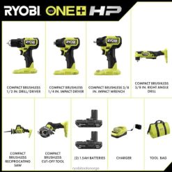 gå inn i ryobi 18v one+-systemet med ryobi 18v one+ hp børsteløs 6-verktøys kombinasjonssett – 1/ 2″ hammerbor, 4-modus 1/4″ slagdriver, 7-1/4″ sirkelsag, frem- og tilbakegående sag, multiverktøy, led lys, 18v one+ 4ah lithium-ion høyytelsesbatteri, 18v one+ 2ah lithium-ion høyytelsesbatteri, lader og verktøyveske. one+ hk-teknologi gir mer kraft, kjøretid, holdbarhet og hastighet ved å bruke børsteløse motorer, avansert elektronikk og høyytelses litiumteknologi. 1/2″ hammerboret leverer opptil 29 % raskere boring i hammermodus, sparer tid ved å bore gjennom betong, murstein og blokk. 1/4″ slagdriveren gir opptil 25 % raskere kjøring, 2220 in-lbs dreiemoment og 4-moduskontroll som gir uovertruffen kontroll når du kjører en rekke festemidler fra store etterskruer til små metallskruer. 7-1/4″ sirkelsagen gir opptil 40 % raskere skjæring og over 325 kutt per ladning. frem- og tilbakegående sag gir opptil 64 % raskere skjæring og gir over 380 kutt per ladning. multiverktøyet har en aggressiv 3,6 grader oscillasjonsvinkel som gir opptil 30 % raskere skjærehastigheter med en justerbar hurtigbryter, som opererer med opptil 20 000 opm. LED-lyset har 280 lumen lysutbytte og et 130 graders dreibart hode for justerbar lysstråleretning. 18v one+ 4ah og 2ah høyytelsesbatterier gir opptil 30 % mer kraft enn standard litium og har en integrert drivstoffmåler med god synlighet for å overvåke gjenværende driftstid. støttet av ryobi 3-års produsentgaranti.