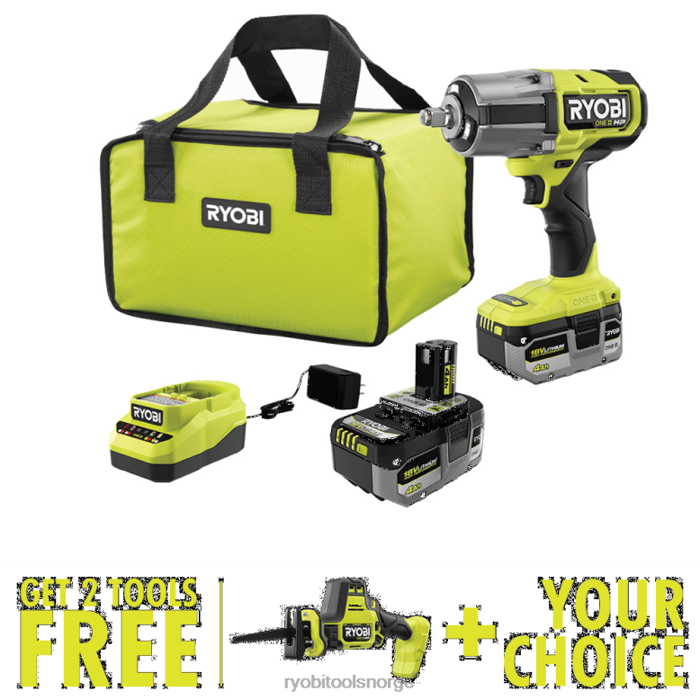 ryobi introduserer 18v one+ hk børsteløs ” slagnøkkelsett med høyt dreiemoment med gratis 18v one+ hp kompakt børsteløs enhånds stempelsag og valgfritt valgfritt verktøy. one+ hp-teknologi gir mer kraft, kjøretid, holdbarhet og hastighet ved å bruke børsteløse motorer, avansert elektronikk og høyytelses litiumteknologi. denne skiftenøkkelen har en børsteløs motor som leverer opptil 1170 ft-lbs. av brytningsmoment og 7x raskere fjerningshastighet for å utmerke seg i krevende bruksområder. 4-modus kontrollkortet gir lave/middels og høye hastigheter mens automodus forhindrer overstramming i forover og kontrollert fjerning iomvendt. den støpte girkassen har større holdbarhet i de tøffeste arbeidsmiljøene. denne slagnøkkelen er designet med effektivitet i tankene, ambolten med friksjonsring gir raske fatningsskifter og de tre-strålede ledede arbeidslysene gir god sikt til arbeidsområdet. dette partnerskapet av kraft og ytelse gjør dette til den perfekte løsningen for enhver bilbutikk. del av ryobi one+-systemet – et hvilket som helst 18v one+-batteri fungerer med alle 18v one+-produkter. dette 18v one+ hk børsteløse 4-modus 1/2 tommers slagnøkkelsettet med høyt dreiemoment dekkes av ryobi 3-års produsentens garanti og inkluderer pbliw01 18v one+ hk børsteløs 4-modus 1/2″ høymomentnøkkel, (2) ) pbp004 18v one+ 4ah litium høyytelsesbatterier, lader, veske og brukerhåndbok med gratis psbrs01 18v one+ hp kompakt børsteløs enhånds stempelsag og valgfritt valgfritt verktøy.