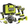 gå inn i ryobis 18v one+ system med 18v one+ hk børsteløs 4-verktøys kombinasjonssett – 1/2″ drill/driver, 1/4″ impact driver , stempelsag, multiverktøy, 18v one+ 4ah lithium-ion høyytelsesbatteri, 18v one+ 2ah lithium-ion høyytelsesbatteri, lader og verktøyveske. one+ hp-teknologi gir mer kraft, kjøretid, holdbarhet og hastighet ved å bruke børsteløse motorer, avansert elektronikk og høyytelses litiumteknologi. 1/2″ boremaskinen leverer opptil 20 % raskere boring og opptil 50 % mer dreiemoment, sparer tid og energi per applikasjon. 1/4″ slagdriveren gir opptil 25 % raskere kjøring og 2100 in-lbs. av dreiemoment som gir dette verktøyet kraften til å drive større fester gjennom tøffe materialer. stempelsagen leverer over 380 cuts per lading, sparer tid og energi på jobben. multiverktøyet leverer opptil 30 % raskere skjærehastigheter med et justerbart hurtighjul, som opererer med opptil 20 000 opm. 18v one+ 4ah og 2ah lithium-ion høyytelsesbatterier leverer opptil 30 % mer kraft enn standard litium og har en integrert høysynt drivstoffmåler for å overvåke gjenværende driftstid. støttet av ryobi 3-års produsentgaranti.