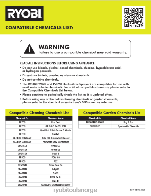 gå inn i ryobi 18v one+-systemet med 18v one+ gallon elektrostatisk sprøytesett. den kraftige motoren gir et sprayområde på 2′ til 10′ og opptil 30 gallons per lading. opplev eksepsjonell ytelse med bare et trykk på en avtrekker, uten manuell pumping. ryobi elektrostatiske sprøytere bruker elektrostatisk teknologi for å lade partikler positivt for å tillate løsninger å dekke overflater raskere og jevnere, noe som reduserer kjemisk bruk og øker effektiviteten. den gallon gjennomsiktige tanken er ideell for bruk med rengjøringsløsninger, ugressmidler, insektmidler, soppdrepende midler og de fleste andre plen- og hagekjemikalier. takle en rekke bruksområder med den 3-i-1 justerbare dysevelgeren. aktiver enkelt elektrostatisk teknologi med på/avbryter, og velg ønsket dråpestørrelse mellom 65 mikron, 85 mikron og 160 mikron. transporter enkelt fra en jobb til en annen med det lette, bærbare designet og bærehåndtaket. bruk sprøyten hele året med en sprøyteløsning for hver sesong. best av alt er det en del av ryobi one+-systemet der et hvilket som helst 18v one+-batteri fungerer med et hvilket som helst 18v one+-produkt. dette 18v one+ gallon elektrostatiske sprøytesettet dekkes av ryobi 3-års produsentgaranti og inkluderer p2809 18v one+ elektrostatisk sprøyte, p190 18v 2ah litiumbatteri, p118b 18v lader, (2) håndleddsstropper og brukermanualer.