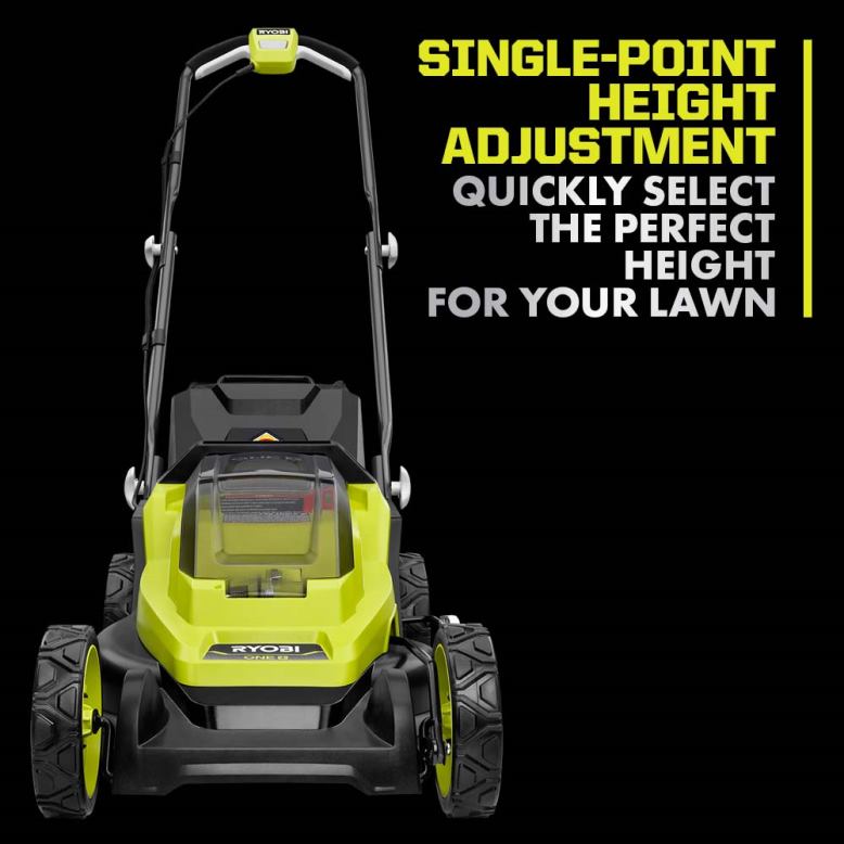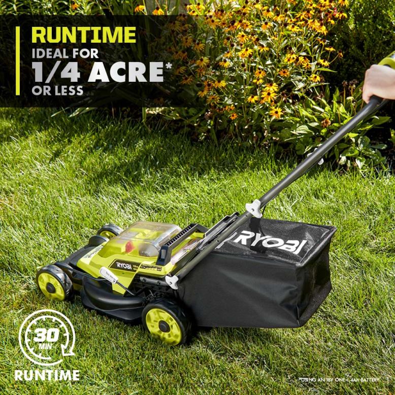gå inn i 18v one+-systemet med ryobi 18v one+ 13” push-gressklipper. med en kraftig motor og et inkludert 4ah batteri, gir denne klipperen opptil 30 minutters kjøretid og er ideell for plener opp til 1/4 acre. enkeltpunkts høydejusteringen lar deg raskt velge den perfekte høyden for plenen din med 7 forskjellige posisjoner (1,5″-4″), mens de sammenleggbare håndtakene gir kompakt, vertikal oppbevaring. pluss, med enkel fjerning av løftesekk og inkludert mulchplugg, er det en lek å bytte mellom bagging og mulching. best av alt er det en del av ryobi 18v one+-systemet der et hvilket som helst 18v one+-batteri fungerer med et hvilket som helst 18v one+-produkt. dette settet inkluderer p1108 18v one+ 13″ gressklipper, pbp005 18v one+ 4ah litiumbatteri, pcg002 18v one+ lader, gressoppsamlerpose, mulchplugg, start-tast og brukermanualer.