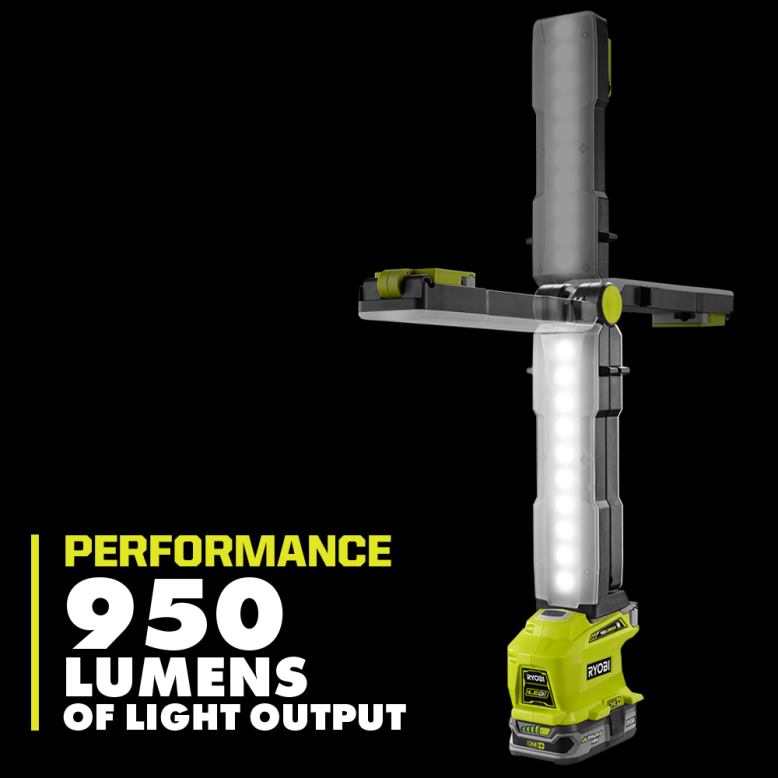 ryobi introduserer 18-volts one+ led arbeidsbenklampe. dette allsidige lyset kan lyse opp arbeidsrom fra alle vinkler. med den roterende 270-armen, er ideell for detaljarbeid med konsentrert belysningsområde. med opptil 9 timers driftstid vil ikke dette lyset forlate deg i mørket. i tillegg til bekvemmeligheten med 270 graders roterende arm, produserer arbeidsbenklyset over 950 lumen for å lyse opp store arbeidsplasser og kjører kjøligere enn halogen- eller glødelys.