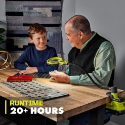 utvid ryobi 18v one+-systemet med ryobi 18v one+ forstørrelsesledd klemlampe. med 500 lumen med LED-lyseffekt og 3,5″ bred forstørrelseslinse har brukere muligheten til å forbedre synet på ethvert prosjekt. Ryobi 18v one+ forstørrelsesledd klemlampe er ideell for teknikere, inspektører, samlere, hobbyister, håndverkere, lesere og mer . Sett dette produktet opp i nesten alle arbeidsområder ved å bruke den praktiske klembasen for å gripe sikkert grep om både avrundede og flate overflater opptil 1-3/4″. akryllinsen av høy kvalitet gir forvrengningsfri 2,25x forstørrelse med 5x punktforstørrelse for nærmere inspeksjoner. en 16″ fleksibel hals og roterende base gir presis plassering som er tilpasset hver brukers arbeidsområdebehov. To lysstyrkeinnstillinger lar brukerne velge 250 eller 500 lumen for å matche illys for oppgaven. LED-lamper av høy kvalitet er jevnt fordelt rundt forstørrelseslinsen for full belysning av arbeidsområdet. dette lyset gir produktivitet hele dagen med over 20 timers driftstid. ryobi 18v one+ forstørrende led-klemmelampe kan brukes som enten en opplyst forstørrelseslinse eller et frittstående led-lys. dette 18V forstørrelsesledde-klemmelyset støttes av ryobi 3-års produsentgaranti. batteri og lader selges separat.