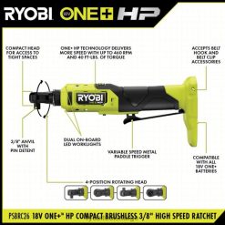RYOBI 18v one+ hk kompakt børsteløst 3/8 høyhastighets skrallesett elektroverktøy Z800T56
