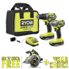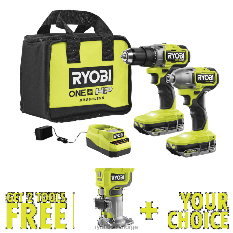 RYOBI 18v one+ hp børsteløst 2-verktøys kombinasjonssett med gratis 18v one+ kompakt ruter og valgfritt verktøy elektroverktøy Z800T11