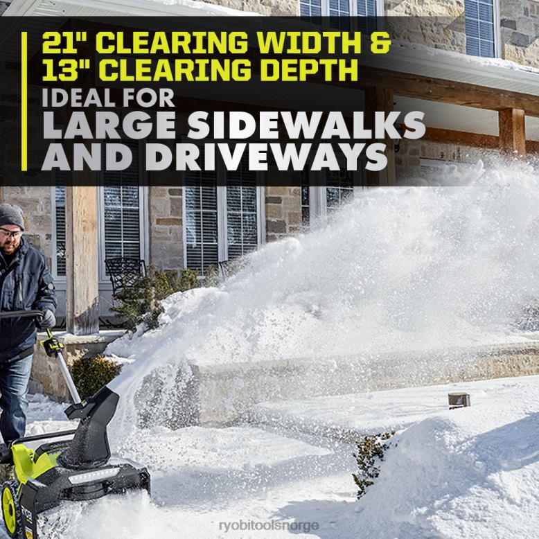 gå inn i ryobi 40v-systemet med ryobi 40v hk børsteløse 21″ snøfresersett. 40v hk-teknologi gir mer kraft enn en 208cc gassnøfreser, noe som gjør dette til en ekte gasserstatning som kaster snø opp til 35′. 40V hk-teknologi kombinerer børsteløse motorer, avansert elektronikk og høyytelses litiumteknologi for å levere kraften til gass uten vedlikehold og mas. den kan rydde opp til 19 bilplasser med (2) inkluderte 40v 7,5ah-batterier, som gir opptil 40 minutters kjøretid. Som en del av Whisper-serien, vårt mest stillegående utvalg av produkter, er denne snøfreseren 84 % stillere enn gass, noe som gjør den perfekt for bruk når som helst på døgnet uten å forstyrre andre. med en ryddebredde på 21” og ryddedybde på 13” er denne snøfreseren ideell for storefortau og innkjørsler. den har også en gummi-/metallskrue med variabel hastighet for grundig rydding og kontrollert snøkasting med en 180-graders retningsrenne. lad opp hvert av de medfølgende 40v 7,5ah-batteriene på mindre enn 75 minutter med den medfølgende 40v hurtigladeren. best av alt er det en del av ryobi 40v-systemet der et hvilket som helst 40v-batteri fungerer med ethvert 40v-produkt. dette 40v hk børsteløse 21″ snøfresersettet dekkes av ryobi 5-års produsentens verktøygaranti, 3-års produsentens batterigaranti, og inkluderer ry408010 40v hk børsteløs 21″ snøfreser, (2) op40752 40v 7.5ah batterier, op406 40v hurtiglader, sjakt og retningsbestemt montering, og brukermanualer.