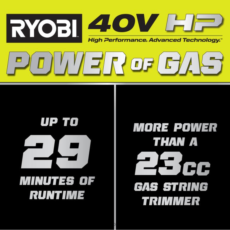- opptil 29 minutters kjøretid med et 40v 2ah batteri