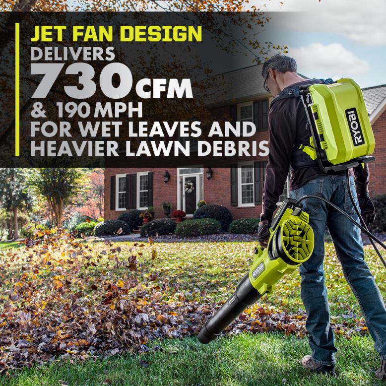 - 730 cfm og 190 mph ideell for våte løv og tyngre plenavfall