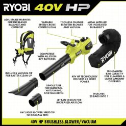 forbedre 40v-systemet med 40v hk jetvifteblåser/vakuumsettet. 40v hk-teknologi, leverer kraften til gass uten vedlikehold eller stress med gassprodukter. ved å bruke (2) inkluderte 40v 4ah litiumbatterier, går denne blåseren i opptil 18 minutter. 40V-teknologi kombinerer en børsteløs motor, avansert elektronikk og litiumbatteri for å gi 600 cfm og 100 mph, noe som gjør denne blåseren ideell for å takle våte løv og tungt plenavfall. Vakuumfunksjonen har et slitesterkt, internt løpehjul som gir deg kraften til å dekke blader i et forhold på 20:1, noe som resulterer i betydelig færre poser å kaste. cruise control-skiven med variabel hastighet lar deg enkelt stille inn og låse ønsket hastighet, noe som reduserer tretthet under langvarig blåsing og støvsuging.sjoner. hastighetsspissen øker lufthastigheten for enda tøffere jobber. best av alt er det en del av ryobi 40v-systemet der et hvilket som helst 40v-batteri fungerer med ethvert 40v-produkt. denne 40v hk blåseren/støvsugeren dekkes av ryobi 5 års produsentgaranti og 3 års produsent batterigaranti. dette settet inkluderer ry404015 40v blåser/støvsuger, (2) op40404 40v 4ah litiumbatterier, op406 40v hurtiglader, blåserør, oppsamlingspose, vakuumtupp, hastighetsspiss, skuldersele og brukermanualer.
