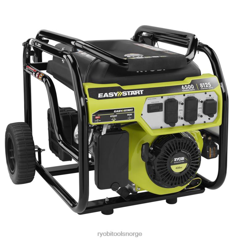ryobi 6500-watts bærbare generator er den perfekte strømløsningen hjemme eller på arbeidsplassen. denne generatoren leverer 6500 løpewatt og 8125 startwatt effekt. en slitesterk ramme og 10 tommers hjul bidrar til å beskytte enheten samtidig som den er enkel å transportere. en automatisk spenningsregulator sikrer pålitelig og konsistent strøm samtidig som den forhindrer skade på generatoren og enhetene som er koblet til den. det lett tilgjengelige kontrollpanelet har fire 120-volts 20 amp (gfci-beskyttet) uttak og ett 240-volts 30 amp vrilåsuttak for å dekke alle dine strømbehov. alt støttet av en ryobi 3-års begrenset garanti, er denne bærbare ryobi-generatoren garantert å fungere.