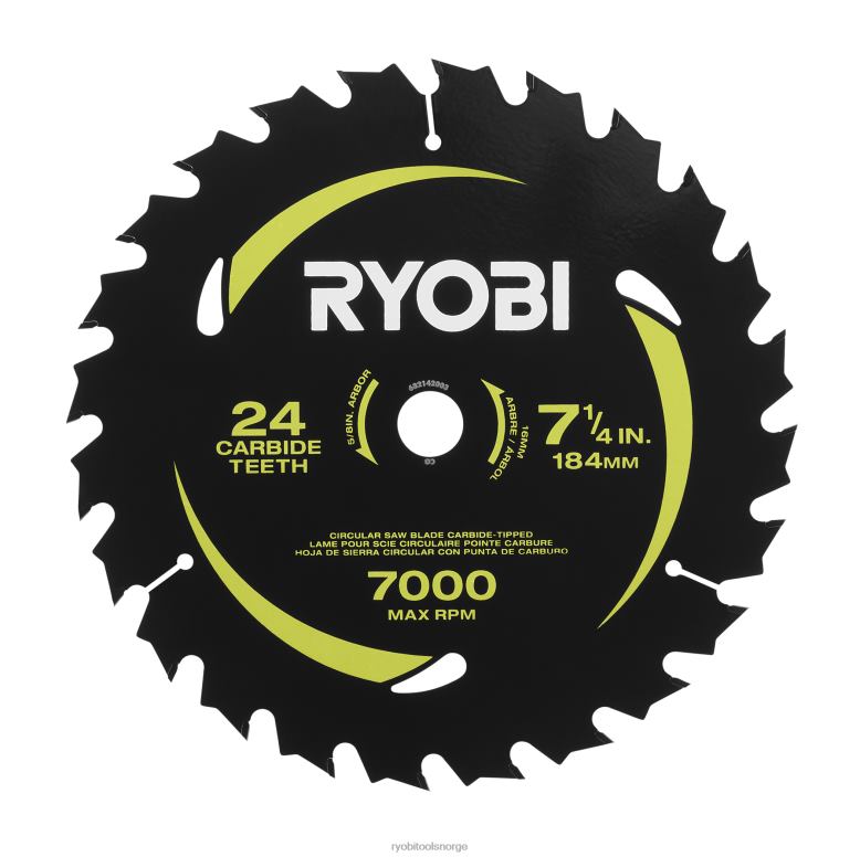 det 7-1/4″ x 24 t karbid tynt snittsirkelsagblad er alt du trenger for å få sagen tilbake til å fungere og er det perfekte tilbehøret for å komplimentere 7-1/4″ sirkelsag. dette bladet er laget med tenner med karbidspiss for å forlenge bladets levetid samtidig som det gir rene kutt av høy kvalitet. med dette bladet kan brukere fortsette å skjære gjennom hardved, bartre, kryssfiner og annet trelast. For best resultat bør du alltid koble sammen ryobi-tilbehøret med ryobi-verktøyene dine.