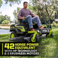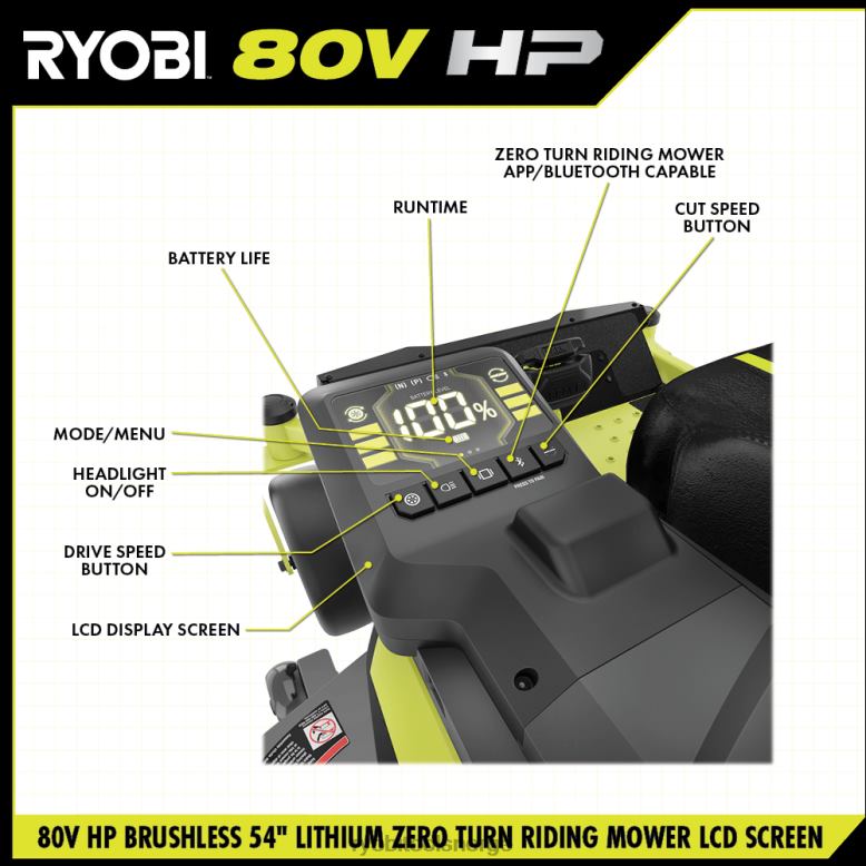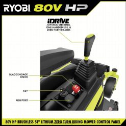 introduserer ryobis første litium-ion batteridrevne nullsvings klipper, ryobi 80v hk 54″ litium elektrisk ztr*. hk-teknologi og 80v batterier kombineres for å levere kraften som tilsvarer en 42 hestekrefter gassmotor*, samtidig som den eliminerer bryet og vedlikeholdet av en gassklipper. Denne rytteren klipper opptil 4 hektar per ladning ved hjelp av 5 børsteløse motorer, (3) 80v 10ah batterier og (4) 40v 12ah batterier, med hyper lader som lades helt opp på 5 timer slik at du er klar for din neste jobb. det revolusjonerende idrive-systemet bruker en intuitiv enhånds joystick-styring for å manøvrere rundt objekter lettere enn en tradisjonell ztr. den innovative LCD-skjermen viser kjøretid, batterilevetid, og klippe-/kjørehastighet mens den er i bruk, mens rideklipper-appen lar deg overvåke ladetid og battlivet eksternt. denne ridegressklipperen har et tverrklippet multibladsystem, som gir overlegen klippe- og klippeytelse, mens 12-punkts høydejusteringen lar deg velge den perfekte klippehøyden mellom 1,5″ og 4,5″. sideutløpssjakten i gummi gjør det enkelt å manøvrere rundt landskapsarbeid slik at brukerne ikke er begrenset av hvor de kan klippe. Denne klipperen er designet med komfort og bekvemmelighet i tankene, og har førsteklasses seteoppheng, 2 usb-porter for å lade telefoner, et oppbevaringsrom og led-frontlykter. mobiltjeneste tilgjengelig i utvalgte regioner. hvis rideklipperen din krever oppmerksomhet, kan en sertifisert ryobi-støttetekniker diagnostisere og utføre service rett fra hjemmet ditt. noen tjenester kan kreve at du tar med klipperen til et av de over 300 servicesentrene over hele landet. plenvedlikehold vil aldri bli det samme takket være den ryobi 80v hk børsteløse 54″ litium elektrisk nullsving rideklipper.