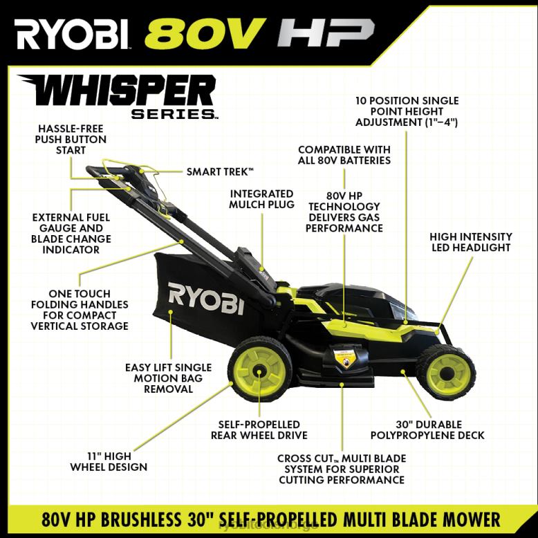 den ryobi 80v hk børsteløse 30″ whisper-serien cross cut gressklipperen bruker 80v hk teknologi for å gi en mer effektiv klippeopplevelse enn gass med den enkle ryobi 80v batterikraft. 80v hk teknologien gir 35 % mer kraft for gassytelse, noe som gjør denne nye 30″ gressklipperen kraftigere enn en 223cc gassklipper. som en del av whisper-serien, ryobis mest stillegående utvalg av produkter, er denne klipperen 70 % mer stillegående enn en gassklipper. med en enkel trykknappstart kan brukere takle opptil 1 acre med opptil 90 minutters kjøretid på det medfølgende ryobi 80v 10ah litiumbatteriet. den eksterne drivstoffmåleren viser gjenværende batterilevetid mens du klipper, og når det er på tide å lade opp, kan den medfølgende 80v hyperladeren lade batteriet på mindre enn én time. denne klipperen er en del av ryobien80V hk børsteløs familie med trådløse produkter. når jobben er fullført, enkel fjerning av løfteposen gjør tømming av gressklipp raskt og praktisk, ett-trykks sammenleggbare håndtak gjør at denne klipperen enkelt kan oppbevares i garasjen eller skuret mellom klippeøktene. en 11″ høyhjulsdesign og høyintensitets LED-frontlykter kombinert med whisper-seriens konstruksjon lar brukere klippe når som helst fra skumring til daggry. Denne klipperen dekkes av en fem års produsentgaranti.