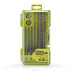 - inkluderer: 1/16 tommer, 3/32 tommer, 7/64 tommer og 1/8 tommer bitstørrelser